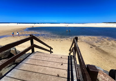 Then, more recently, the sand that was liberated by that repositioned itself, to where, at low tide, it now blocks Pumicestone Passage, the previously navigable waterway, at the point between Bribie and Caloundra's Happy Valley.
